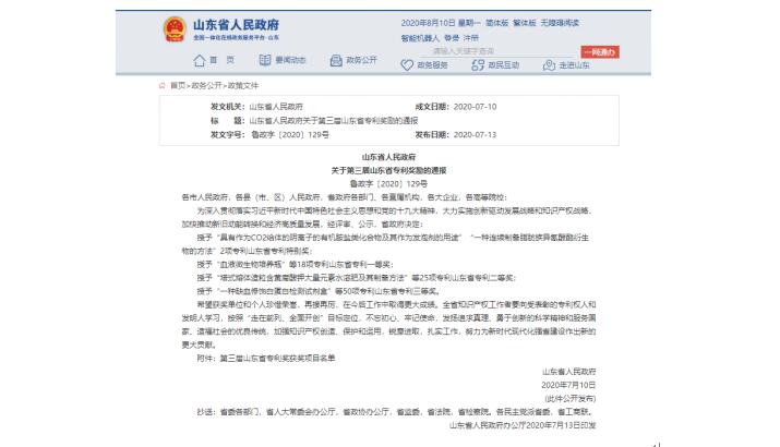 近日,山东省人民政府对第三届山东省专利奖励进行通报,信誉至上金年会集团旗下省环科院提报的“底泥重金属污染模块化异位治理方法”荣获山东省专利二等奖。